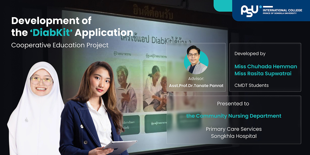 Introducing “DiabKit”—a mobile application designed to transform diabetes care. Developed by Ms. Chuhada Hemman and Ms. Rasita Supwatrai, this digital health tool assists caregivers and at-risk individuals in managing dietary intake and monitoring blood glucose levels with ease.